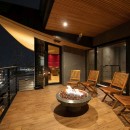 Bedroom 1: Upper floor Master bedroom with a king-size bed, WiFi, A/C, TV, access to terrace, private onsen, fireplace, and en-suite bathroom with shower, double vanity and WC. 2 guests maximum
