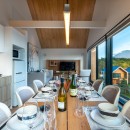 There is an open layout on the top floor which expands the living space and facilitates movement throughout the home. Entertaining is easy with the full modern kitchen, custom selected tableware and gorgeous timber dining table. Textures abound in the living area with multilayered rugs and an endless supply of cushions. The master bedroom and associated ensuite ooze class. There is a laundry and large drying area downstairs for when you return home from a long day on the nearby slopes.