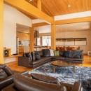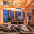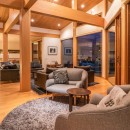 The chalet's three inviting lounges come alive in the evening with their tasteful, soft lighting, while the contemporary fireplace's warm and calming radiance provides an ongoing invitation to share tales of outdoor escapades.