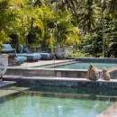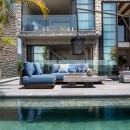 The pool area is complemented by day beds, sunbeds, and a 12-seater dining table made of natural wood, creating an ideal space for al-fresco dining and relaxation.