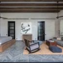 Enter the first loft through private bamboo doors from the main entrance. This loft features floor-to-ceiling sliding glass doors draped with blackout curtains, a kitchenette equipped with an induction cooker, coffee maker, toaster, built-in fridge, and a breakfast bar overlooking its private plunge pool. The upper part of the loft houses the sleeping area, furnished with an extra king-sized bed, a spacious closet with mirrored sliding doors, and an en-suite bathroom boasting a walk-in rain shower and twin vanity sinks made of natural stone. The comfort area is thoughtfully separated from the bathroom.