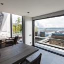 Ascend the stairs to the third floor, where you'll discover the second loft. This loft offers astonishing ocean views from either the infinity-edged swimming pool or the sleeping area. It features a fully equipped kitchen with built-in appliances and a dining table made from natural wood, comfortably seating up to six guests. The lounge area in this loft is even more spacious than the first loft, complete with its own living space adorned with a sofa and cushions on a rattan carpet. Highlighting this loft is a six-meter