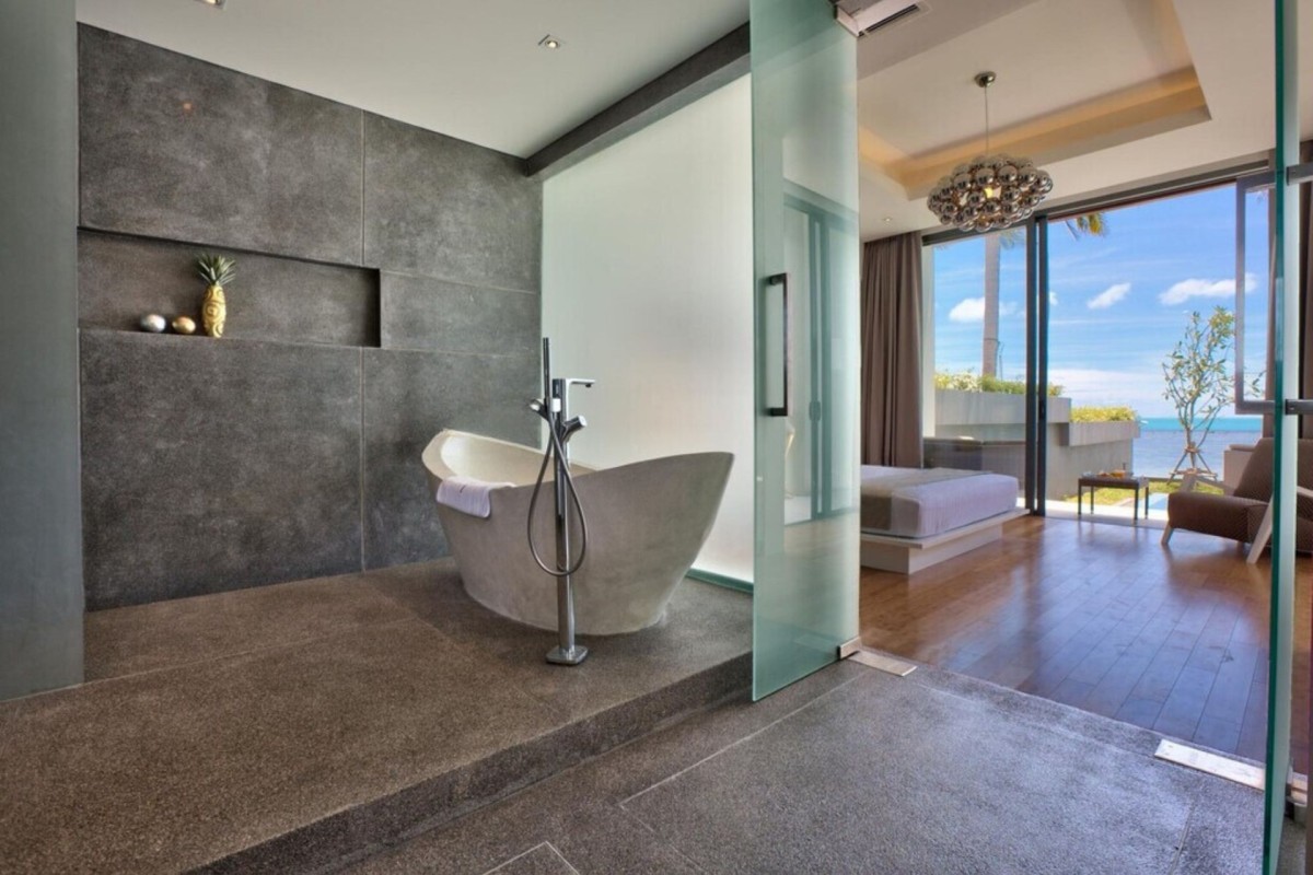 Inside, the villa’s modern, open-plan design blends indoor and outdoor living with ease. Comfortable lounging areas and plush furnishings invite you to unwind fully. Whether you’re curled up on the sofa or dining alfresco with ocean views, every detail of Villa Neung is designed for maximum comfort and relaxation.