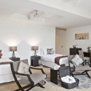 Bedroom 5: Level 2 bedroom with two twin beds (can be converted into a king-size bed), ceiling fan, A/C, TV, WiFi, safe, walk-in closet, and en-suite bathroom with shower, vanity and WC. 2 guests maximum