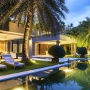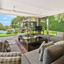Indulge in an abundance of private and communal spaces, including captivating water features, a shaded poolside sala, a garden dining pavilion, a resort-style kitchen, expansive living areas that seamlessly merge with the outdoors through folding glass doors, a private cinema room, and even a sunken beachside spa complete with its own pool.