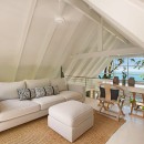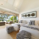 Step into the villa and be greeted by lush greenery and a sleek 10-meter in-ground pool, leading you to the master suite. The master suite opens up to both the front terrace and rear garden, allowing you to fully immerse yourself in nature. A second bedroom, with twin beds, mirrors the master suite and shares a spacious terrace with exceptional ocean views. A passage separates the en-suite bedrooms from the open-plan living/dining/kitchen area and guest bathroom. Ascend the stairs to a mezzanine lounge, providing a flexible space for relaxation. The high white wooden ceilings and folding glass doors in the lounge and living areas seamlessly blend the indoors with the outdoors, connecting to the large al fresco terrace adorned with three distinct lounging areas, perfect for entertaining or unwinding.
