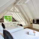 Bedroom 2: Second floor bedroom with two single beds (can be converted into a king-size bed), ceiling fan, A/C, WiFi, private balcony, and en-suite bathroom with shower, vanity, bidet and WC.  2 guests maximum