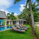 Introducing Villa Acacia, an exquisite beachfront retreat in Thailand that embodies both luxury and elegance. As the largest four-bedroom villa on our estate, Villa Acacia offers ample space to accommodate up to eight guests. The master bedroom, boasting breathtaking sea views, is situated at the front of the villa, while the remaining three bedrooms are nestled around the centerpiece of the villa - a lush tropical Thai garden, ensuring privacy and tranquility.