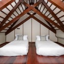 Bedroom 3 (Mizu): First-floor bedroom with two single beds (can be converted into king-size bed), ceiling fan, A/C, TV, WiFi, safe, and en-suite bathroom with shower, vanity, and WC. 2 guests maximum.