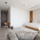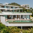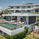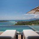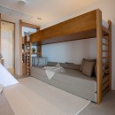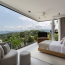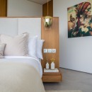 The villa comprises three luxuriously appointed double bedrooms and a kid's room with a custom-built double-length upper bunk bed and an oversized sleeping couch, making it an ideal luxury retreat for families. The contemporary bedroom interiors, influenced by tropical elements, showcase natural oak and stone. The master bedroom on the second floor features floor-to-ceiling sliding doors opening onto a sun terrace with panoramic views of the infinity pool, sea, and Koh Matlang island. Guest bedroom 1 offers a breathtaking sea and mountain view through its floor-to-ceiling windows. The Garden room on the lower level provides access to a private terrace and garden with a stunning sea view. Each bedroom has its en-suite facilities, with the master bedroom featuring a standalone bath. The villa comfortably accommodates 6 adults and 4 children/teenagers.