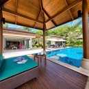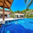 Introducing Villa Baan Feung Fah, an extraordinary private luxury retreat that surpasses all expectations. From its grand wooden entrance and intricately carved doors to its pagoda-style roof, this villa exudes imperial elegance. Step inside, and you'll be greeted by a stunning tropical landscape that seamlessly connects each pavilion. The living pavilion sits gracefully in front of the decked sun terrace, an inviting blue-tiled infinity pool, and a spacious al fresco sala, accessible through sunken stepping stones within the pool. With tasteful furnishings, natural materials, expansive terraces, lush gardens, and open-air pavilions, Baan Feung Fah epitomizes the tropical indoor/outdoor living philosophy, creating an enchanting space for entertaining and relaxation.