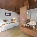 Bedroom 2: Second-floor bedroom with two single beds (can be maid as a king size bed), ceiling fan, A/C, Smart TV, WiFi, safe, and en-suite bathroom with bathtub, shower, vanity,y and WC. 2 guests maximum