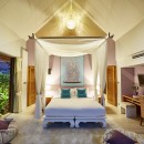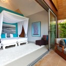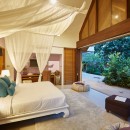 Bedroom 2: Beachside bedroom with a king-size bed, single bed, trundle bed in the side area, ceiling fan, A/C, TV, WiFi, safe, walk-in wardrobe, and en-suite bathroom with bathtub, indoor/outdoor shower, double vanity, and WC.  2 adults and 2 kinds guests maximum