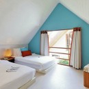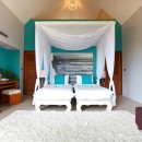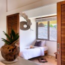 Bedroom 5: Mezzanine upper floor bedroom with two single beds (can be made as a king size bed) A/C, WiFi, safe, and shared bathroom with bathtub, indoor/outdoor shower, double vanity, and WC. 2 guests maximum (bedroom 4)