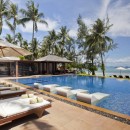 Experience the epitome of luxury and natural beauty at Villa Baan Kilee, situated on Koh Samui's pristine western coast. This exceptional 8-bedroom retreat spans across 1.5 acres of lush grounds, boasting an impressive 330-meter beach frontage along the white sands of Lipa Noi, a renowned year-round swimming beach. The villa's architectural design seamlessly integrates the indoor and outdoor spaces, with lily ponds, orchid-covered walkways, and folding doors and windows that invite the natural world inside. The cedar roofs blend harmoniously with the surrounding environment, while offering breathtaking panoramic views of Samui's famous Five Islands and unforgettable sunsets.