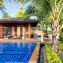 Children will delight in the dedicated Kids Zone, featuring a playground with heat-resistant climbing frames, swings, and an all-weather table tennis table. The Twin Bedroom, also known as the Lily Suite, offers green and water views and a wrap-around terrace with a seating area, allowing supervision of the children in the playground. It conveniently connects to the kids' pool adjacent to the suite, while the spacious lawn provides ample space for daily football games or personal yoga and fitness sessions.
