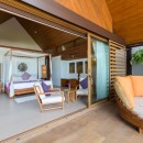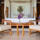 Bedroom 1: Lotus -Master bedroom with a king-size bed, ceiling fan, A/C, WiFi, safe, sea view, access to the pool and beach and en-suite bathroom with outdoor bathtub and shower, double vanity, and WC. 2 guests maximum
