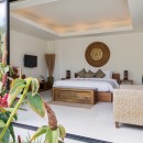Bedroom 1: Master bedroom second floor with a king-size bed, A/C, Smart TV, safe,walk-in wardrobe, private balcony,  and en-suite bathroom with bathtub, shower, double vanity, and WC. 2 guests maximum