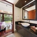 The highlight of this villa is the magnificent great room, housed in a pavilion adorned with French doors, a high vaulted ceiling, and magnificent cathedral windows that flood the space with natural light. As you step out onto the pool and oceanfront lawn, a sense of tranquility envelops you. Indulge in leisurely moments by the large swimming pool and hot tub, embraced by a teak deck. The open-air dining sala beckons for al fresco meals, allowing you to relish the ocean breeze. Every detail of Baan Samlarn has been carefully curated to provide an exceptional experience.