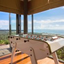 Dare to take a dip in the infinity pool that appears to hang over the cliff, immersing yourself in a sensation of pure bliss. Stay active with the indoor gym, practice your swing on the putting green, or engage in friendly competition on the field dedicated to badminton, volleyball, or soccer. Unleash your competitive spirit at the petanque boulodrome, perfecting your target bowling skills. For indoor relaxation and entertainment, the villa is equipped with a foosball table, cable TV, and multiple indoor and outdoor lounging areas.