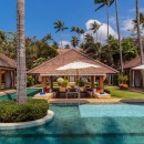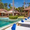 Ban Mekkala features six bedrooms, including two master suites. Each bedroom offers a private haven furnished with a king bed, entertainment system, and an en-suite bathroom with outdoor courtyards or a walk-in shower and bathtub. With direct access to the pool or sea, you can effortlessly embrace the tropical surroundings. For memorable al fresco moments, a stone path leads to a sunken poolside pavilion where you can indulge in delectable feasts prepared by your personal Thai chef.