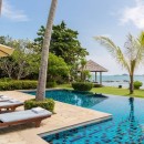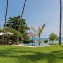 Indulge in the ultimate beachfront escape at villa Ban Sairee, located in the serene Laem Sor area of Koh Samui. Set across three acres of lush greenery, adorned with swaying palm trees and meticulously manicured gardens, this private estate boasts nine bedrooms and offers direct access to a quiet beach, perfect for year-round swimming.