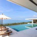 Perched 180 metres above sea level on Koh Samui’s peaceful north coast, Villa Blue View Luxe is an extraordinary contemporary retreat offering sweeping views across the Thai Gulf, including the renowned filming location of White Lotus Season 3. Designed by famous architect Gary Fell, founder of GFAB, the villa showcases bold modern architecture softened by minimalist elegance, creating a seamless harmony between refined living and its natural surroundings. The atmosphere is one of effortless luxury—private, tranquil, and perfectly suited for relaxation. As evening falls, the villa becomes truly enchanting, providing an idyllic setting to enjoy sunset cocktails against a spectacular ocean backdrop.