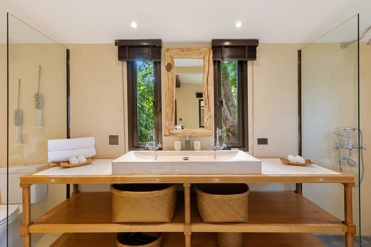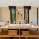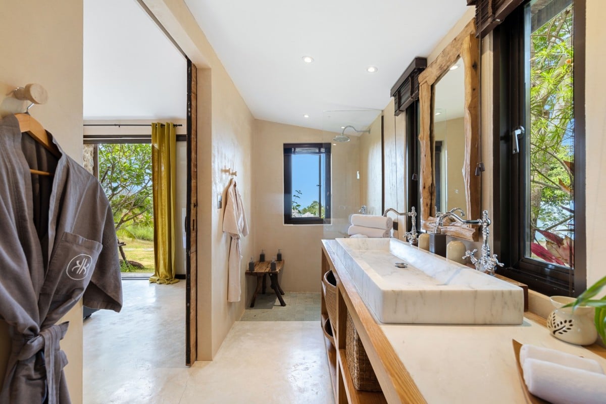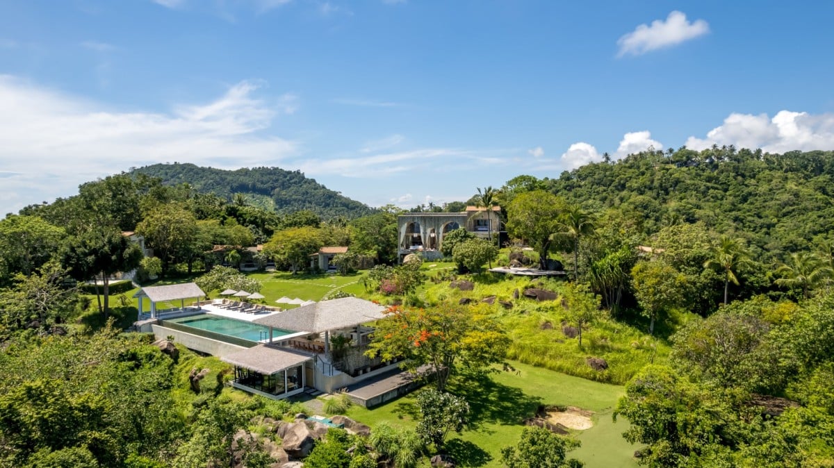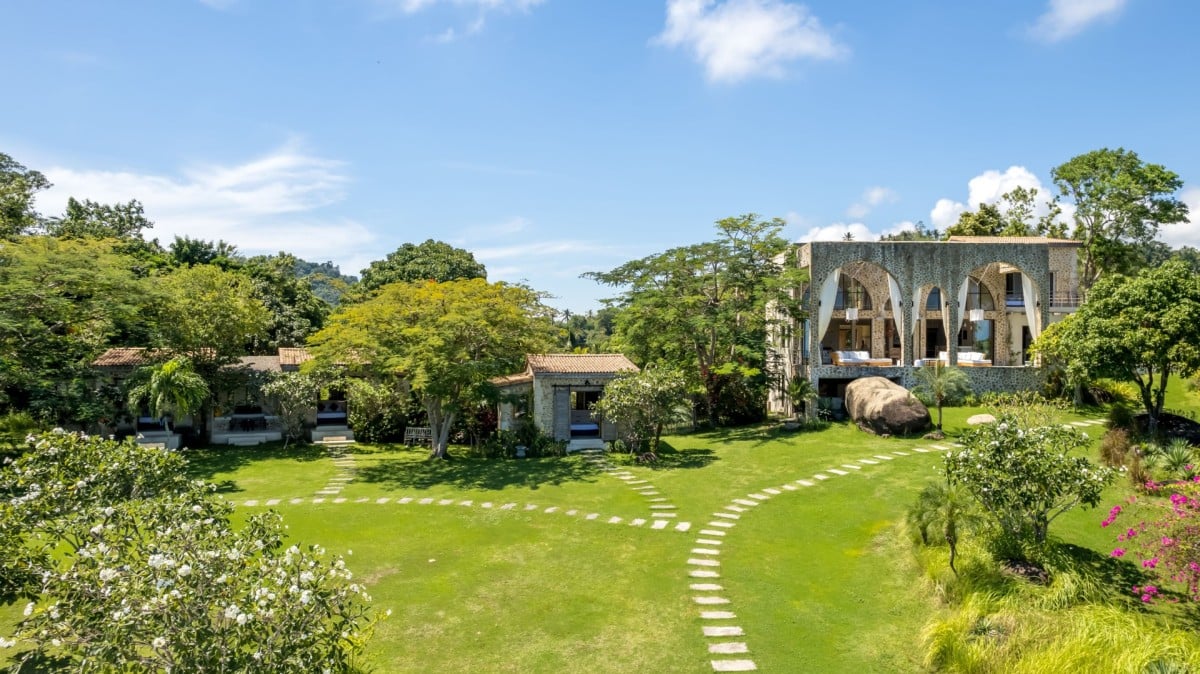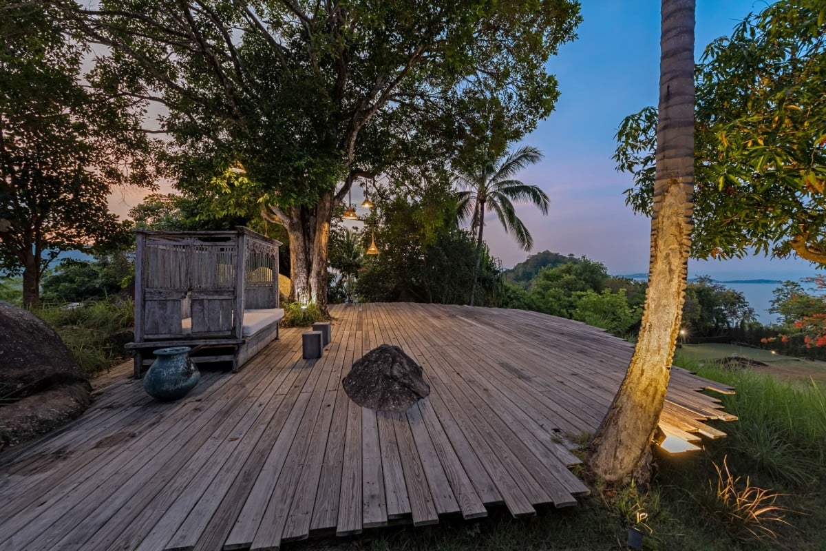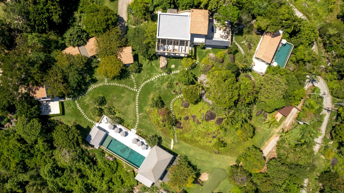 The layout of Koh Koon has been thoughtfully designed to blend into its natural surroundings. Giant boulders are retained as garden features, rolling lawns connect the various pavilions via stone pathways, and rockeries and grassland gardens frame the estate beautifully. Despite its rustic aesthetic, the villa offers refined comfort and five-star facilities throughout.