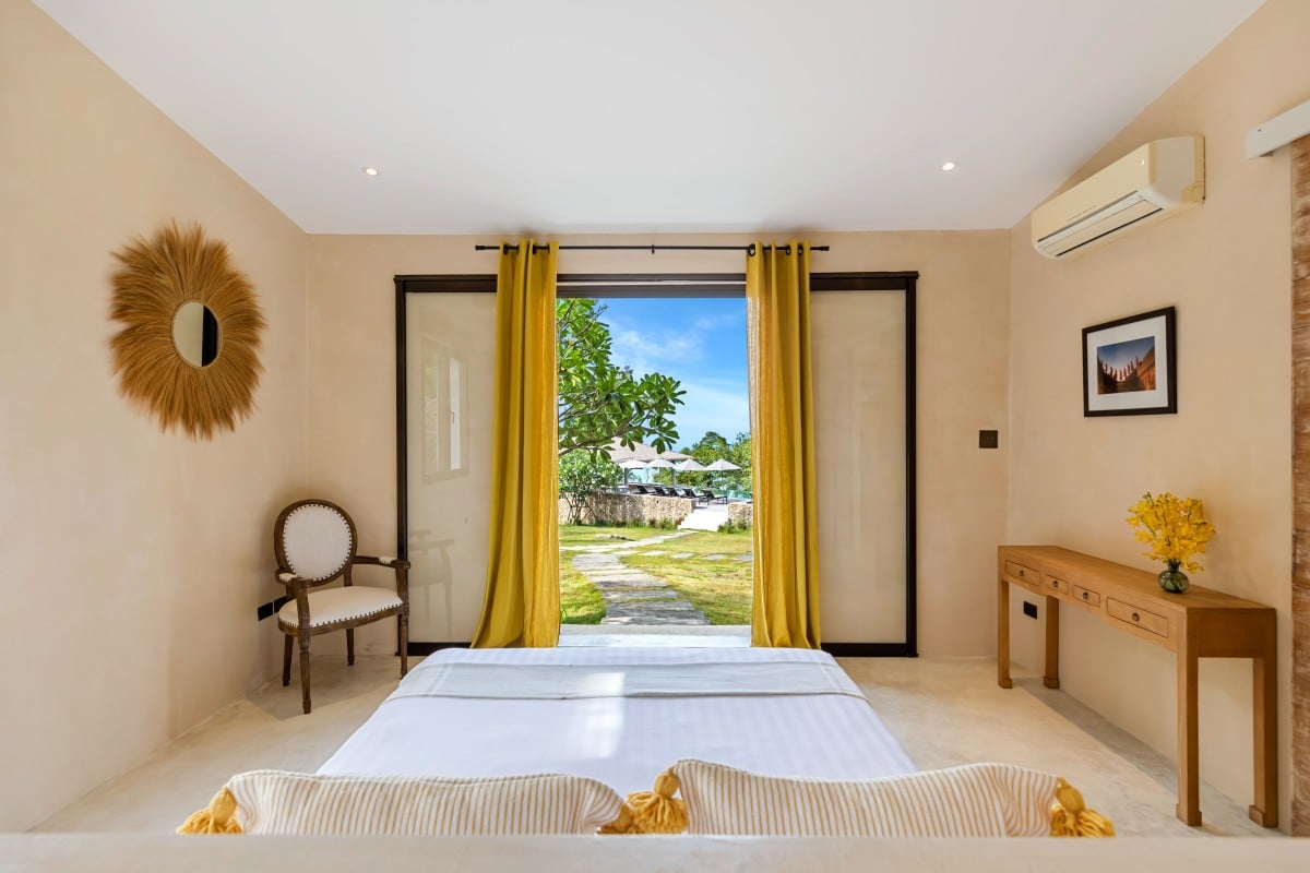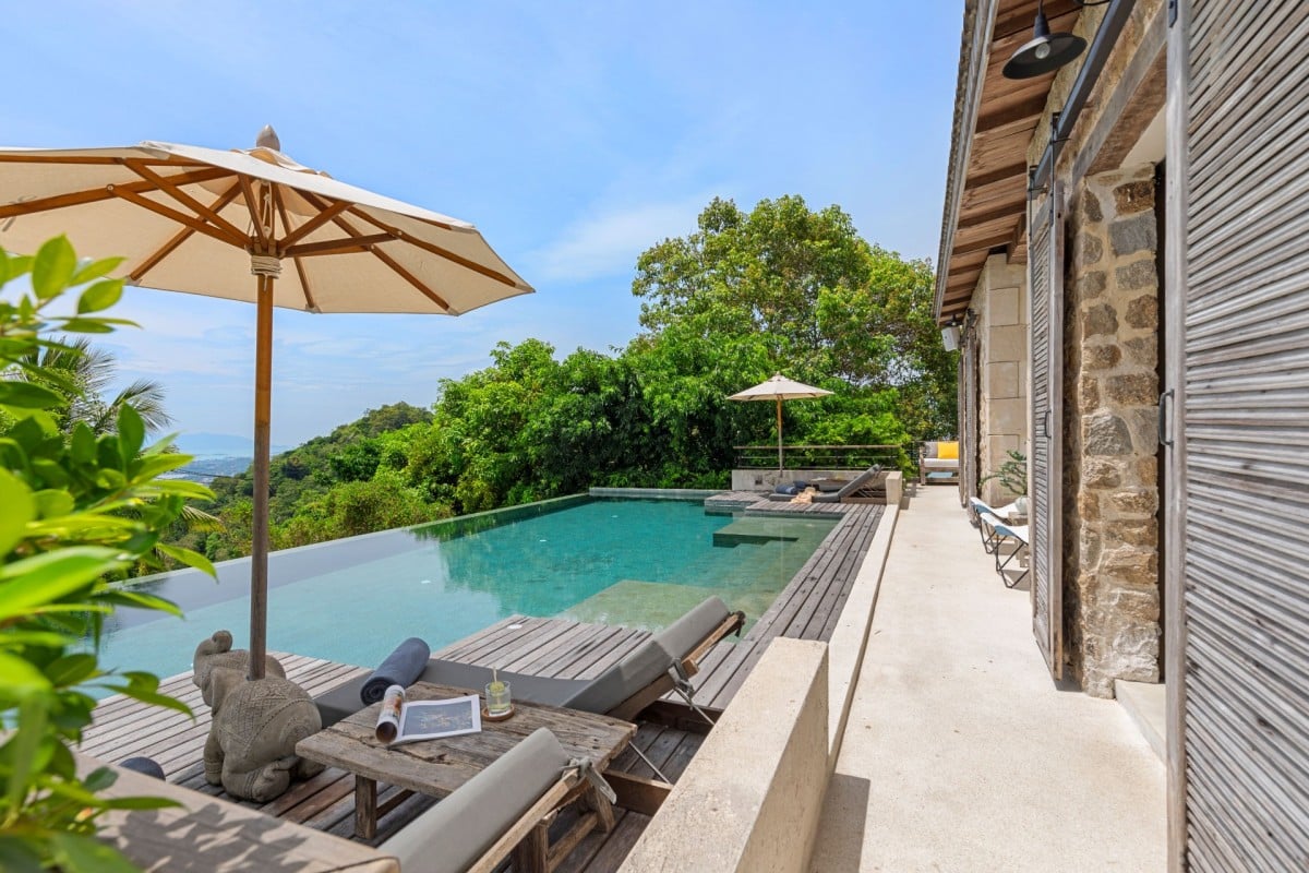 Set on seven Rai (11,200 sqm) of lush hillside overlooking Chaweng Bay, Koh Koon is a spectacular private estate where East meets the Mediterranean. With its rock-clad buildings, terracotta roof tiles, wrought iron details, and aged wood shutters, the villa evokes the charm of a French countryside retreat—subtly reimagined for a tropical island setting, complete with swaying coconut palms and panoramic sea views.