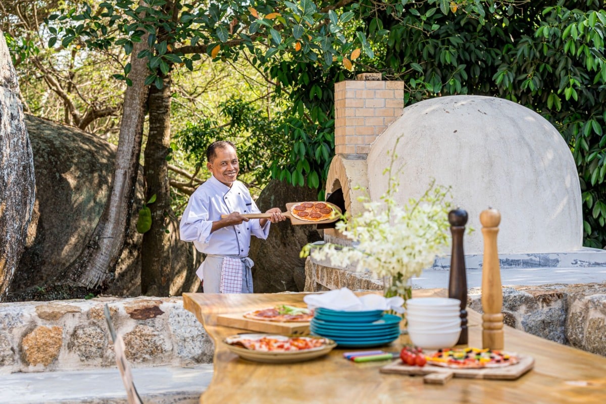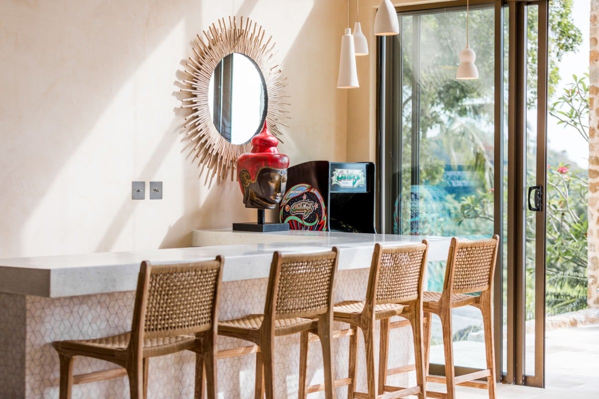 Dining at Koh Koon is a highlight, with multiple indoor and outdoor settings to enjoy meals throughout the day—from breakfast on sun-dappled terraces to poolside lunches, barbecues, and elegant indoor dinners. A hand-built pizza oven, barbecue area, juicer for fresh island produce, and pool dining sala add variety and flair to every occasion. The experienced resident chef uses herbs and vegetables from his own garden, ensuring fresh, flavourful cuisine throughout your stay.