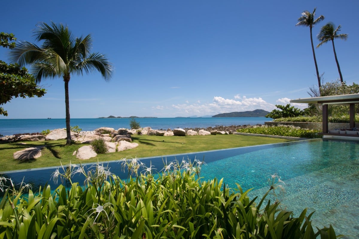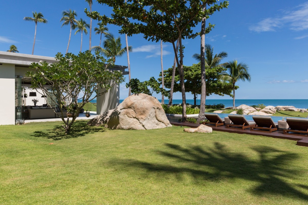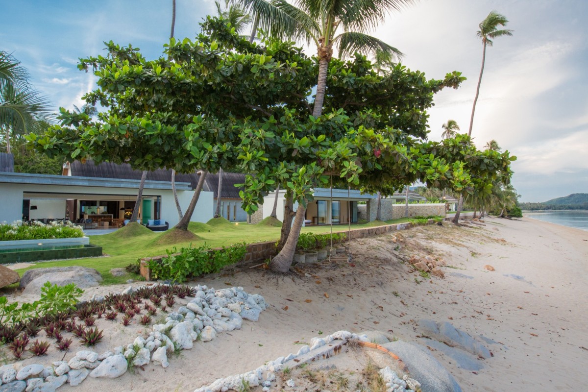 Wake up to swaying palms and rolling waves at Villa Malabar, a spectacular beachfront retreat with five adult bedrooms plus two children’s rooms, set directly on Laem Sor Beach along Koh Samui’s peaceful southern coast. This serene location offers a rare glimpse of the island’s traditional charm and local village life.