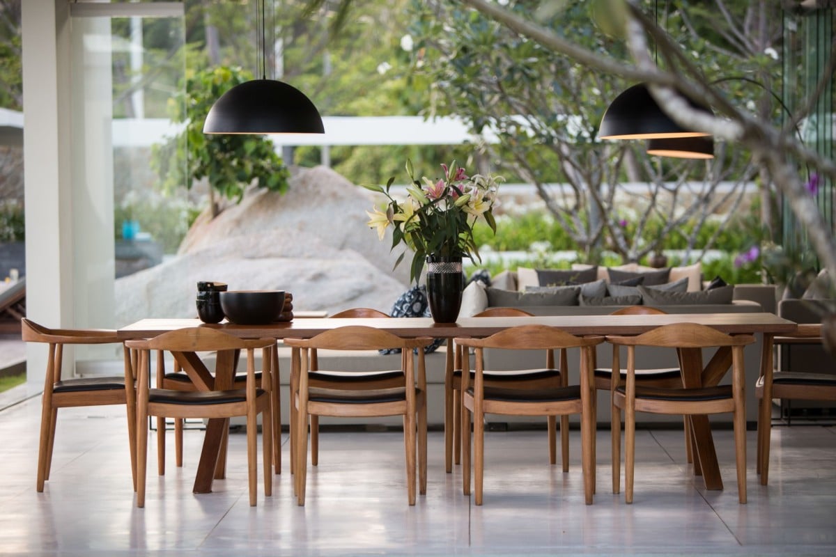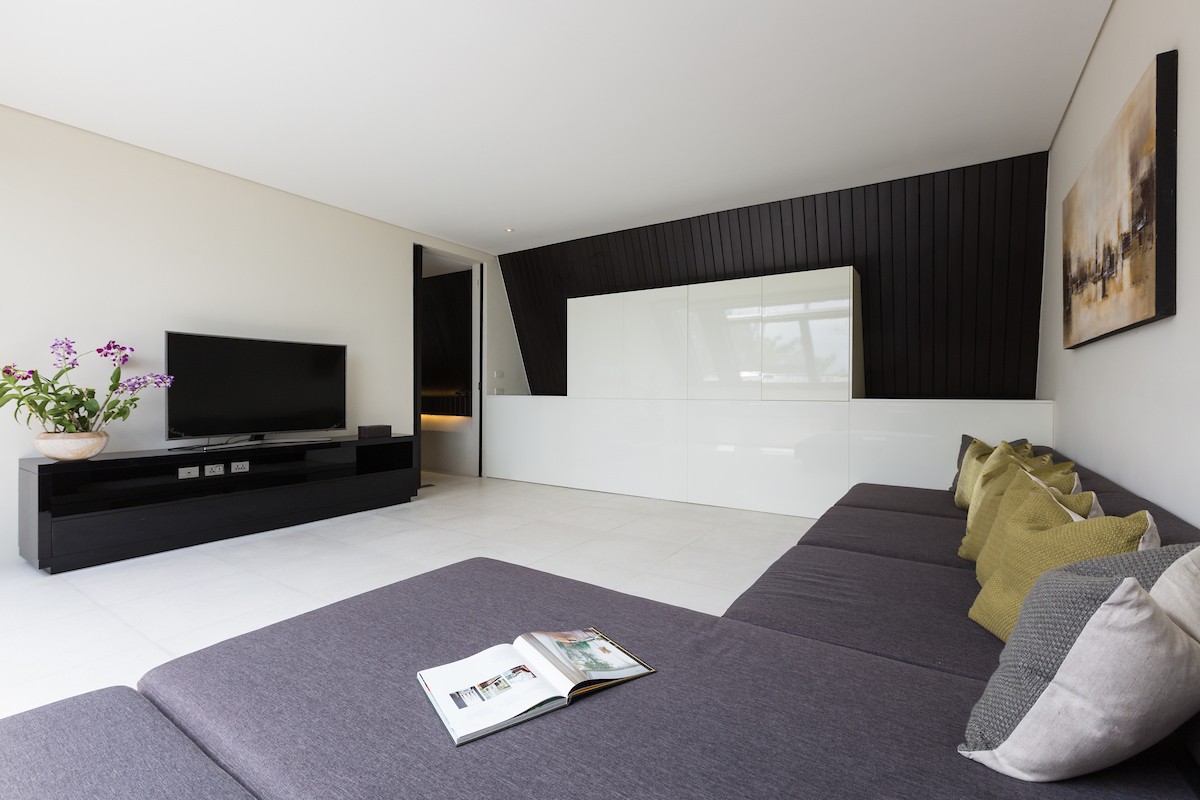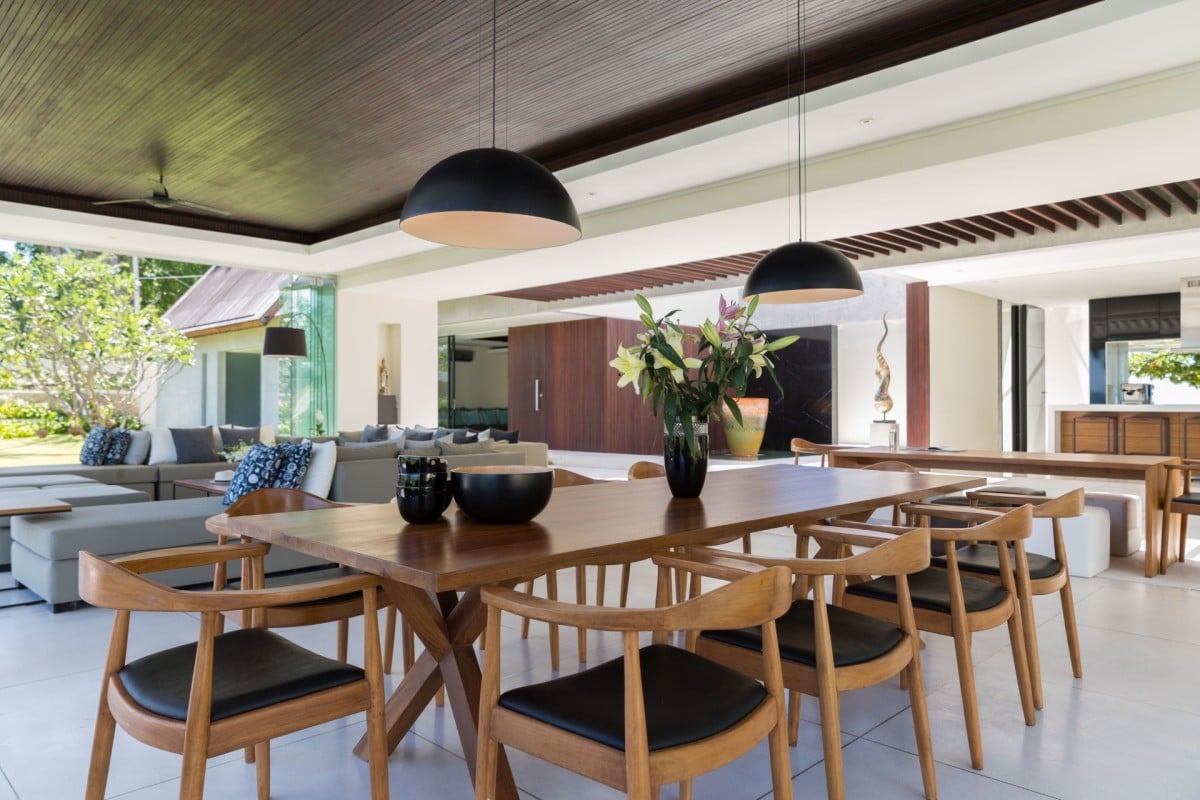 The state-of-the-art kitchen doubles as a social hub, featuring a large central island with bar seating and seamless access to the outdoors. Even with a private chef at your service, it’s a wonderful place to gather. Evenings are best spent enjoying a Thai feast around one of the villa’s two grand dining tables.
