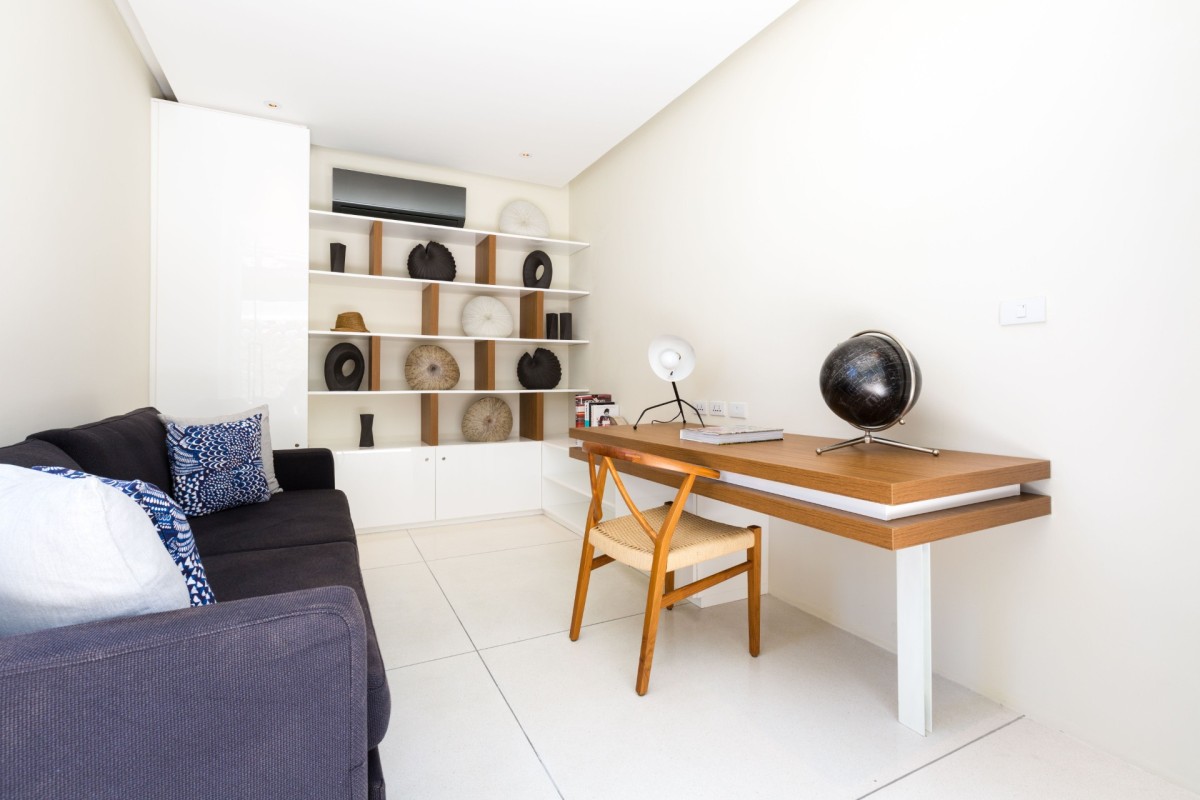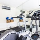For those mixing leisure with productivity, a dedicated office area provides a comfortable workspace. Guests can also stay active in the fitness room, equipped with a treadmill, step machine, and free weights.