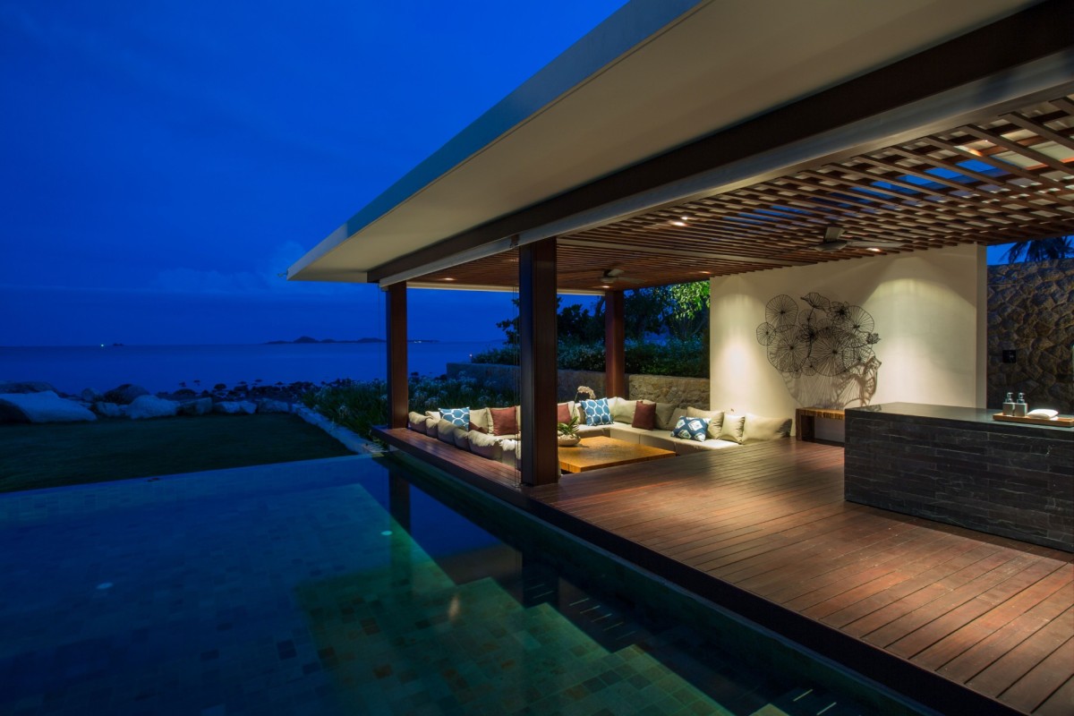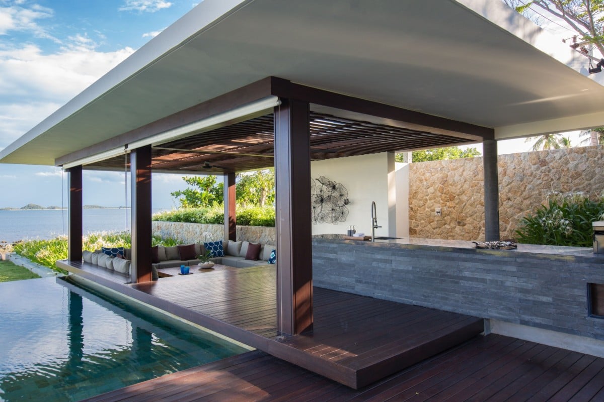 In a separate oceanfront pavilion, two additional bedrooms offer breathtaking coastal views and a peaceful retreat.