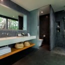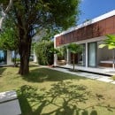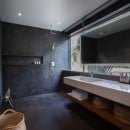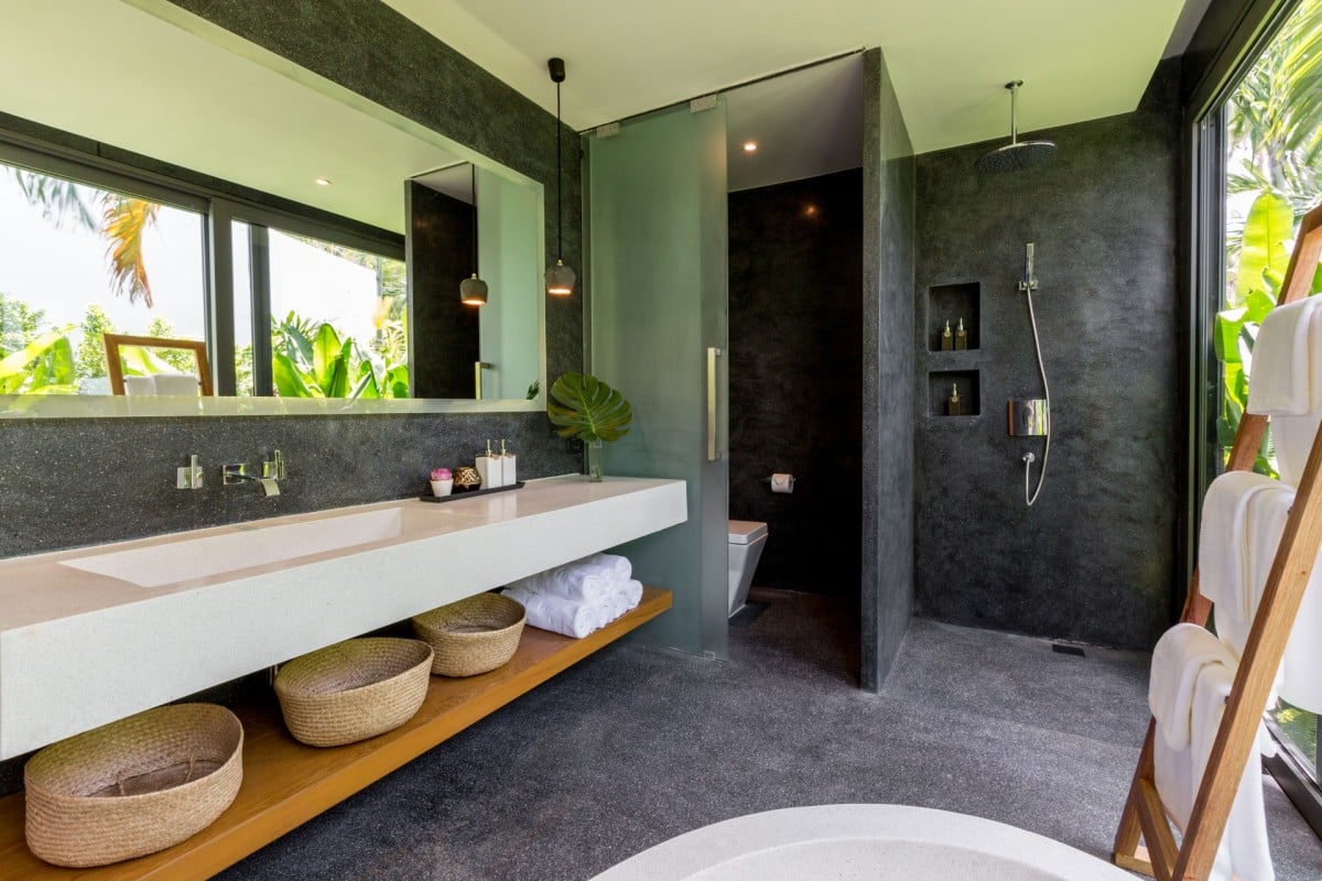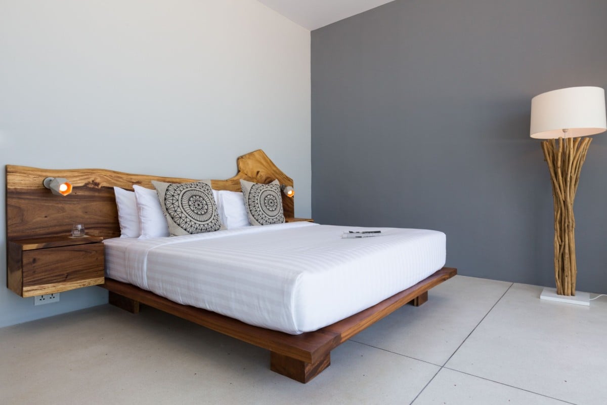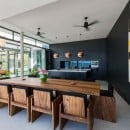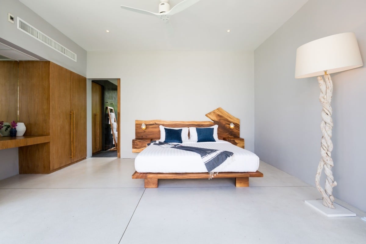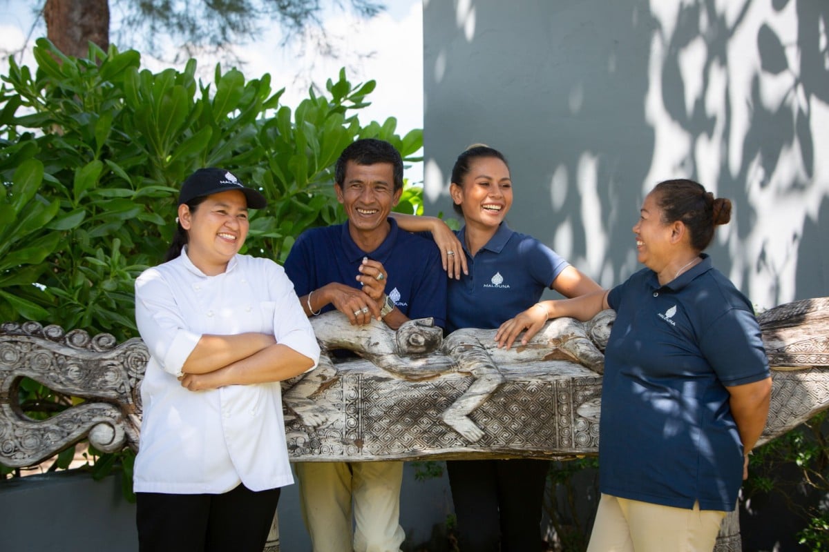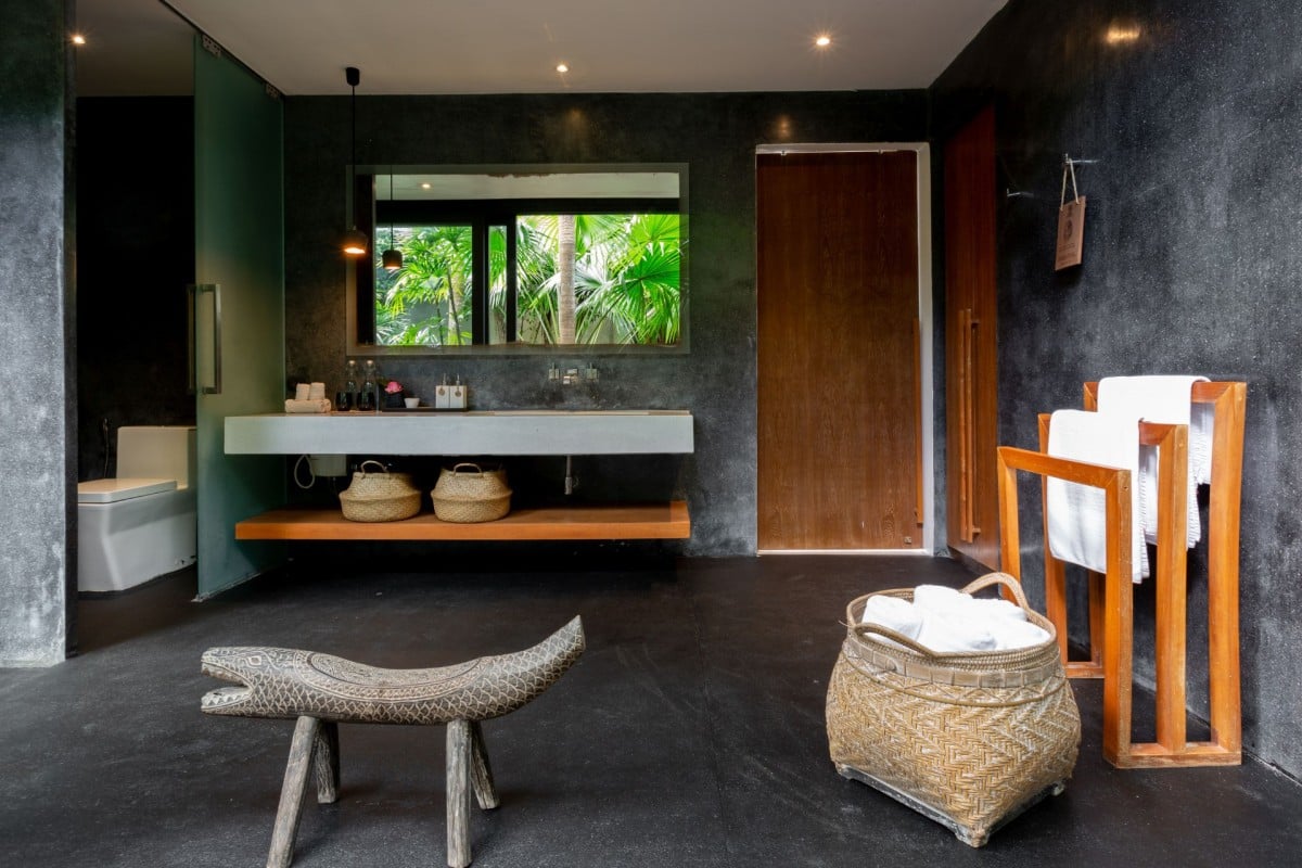 Hidden behind oversized wooden doors, the villa opens into a lush tropical garden filled with frangipani and bird of paradise. Inspired by Japanese Zen and mid-century modern architecture, Villa Malouna is thoughtfully designed to blend with its natural surroundings. Open-plan pavilions, cooling sea breezes, and refined interiors featuring teak wood and terrazzo create a sense of understated luxury and serenity.
