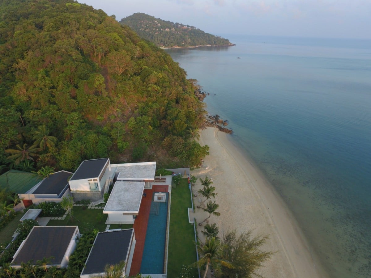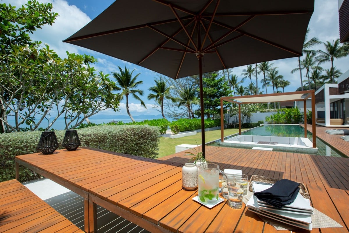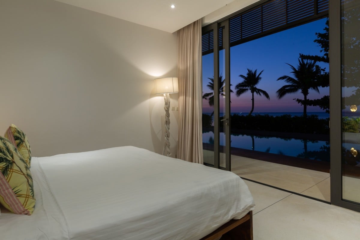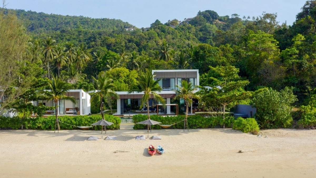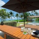 Just 30 minutes from Koh Samui Airport, Villa Malouna is a peaceful beachfront sanctuary on Laem Noi Beach, boasting 45 meters of soft white sand and panoramic views across the lagoon to Koh Phangan. A vibrant coral reef lies just offshore for snorkelling, while spectacular sunsets and the gentle rhythm of local fishing boats create a truly idyllic setting.
