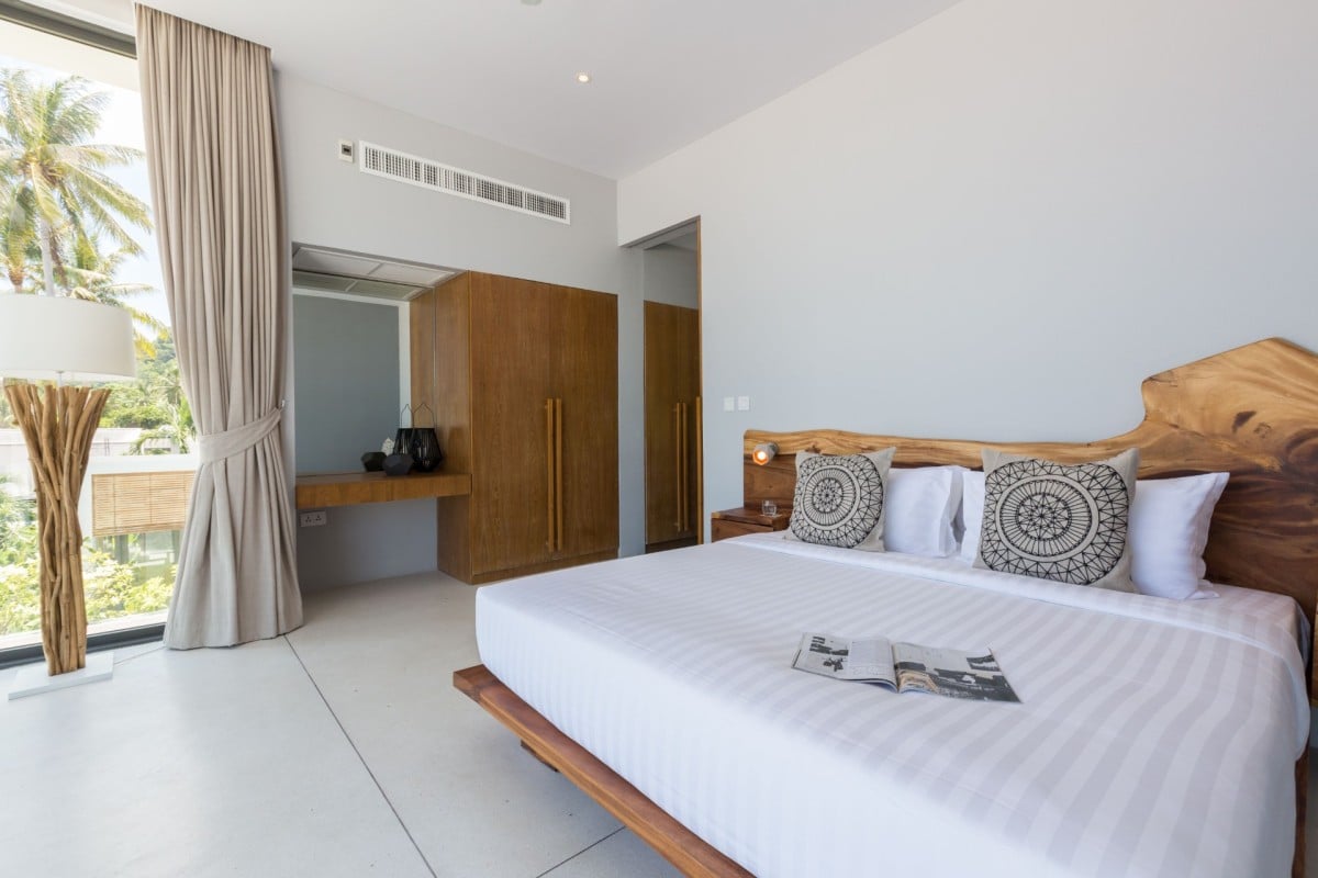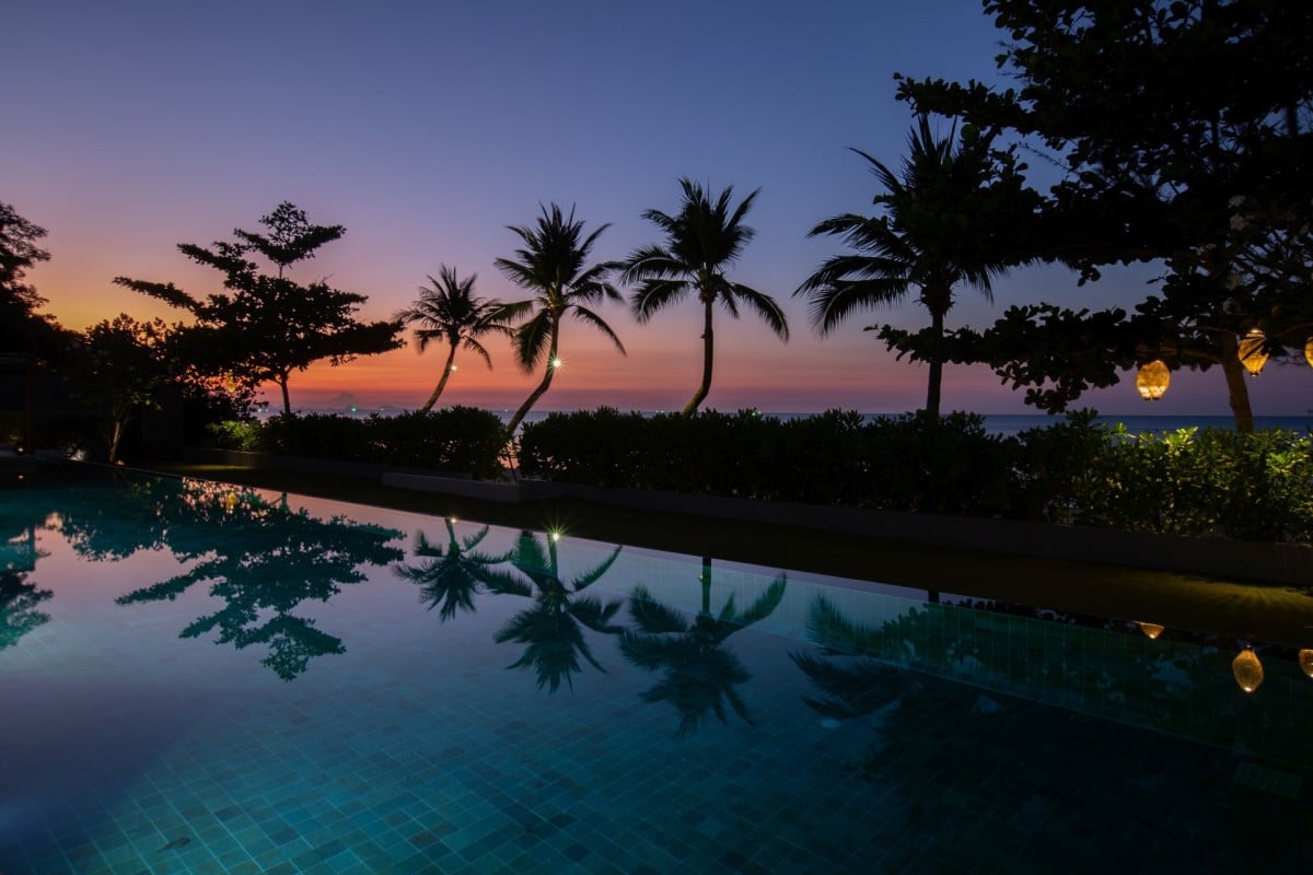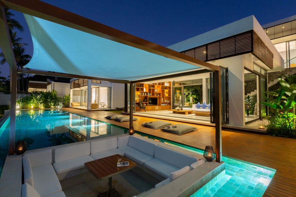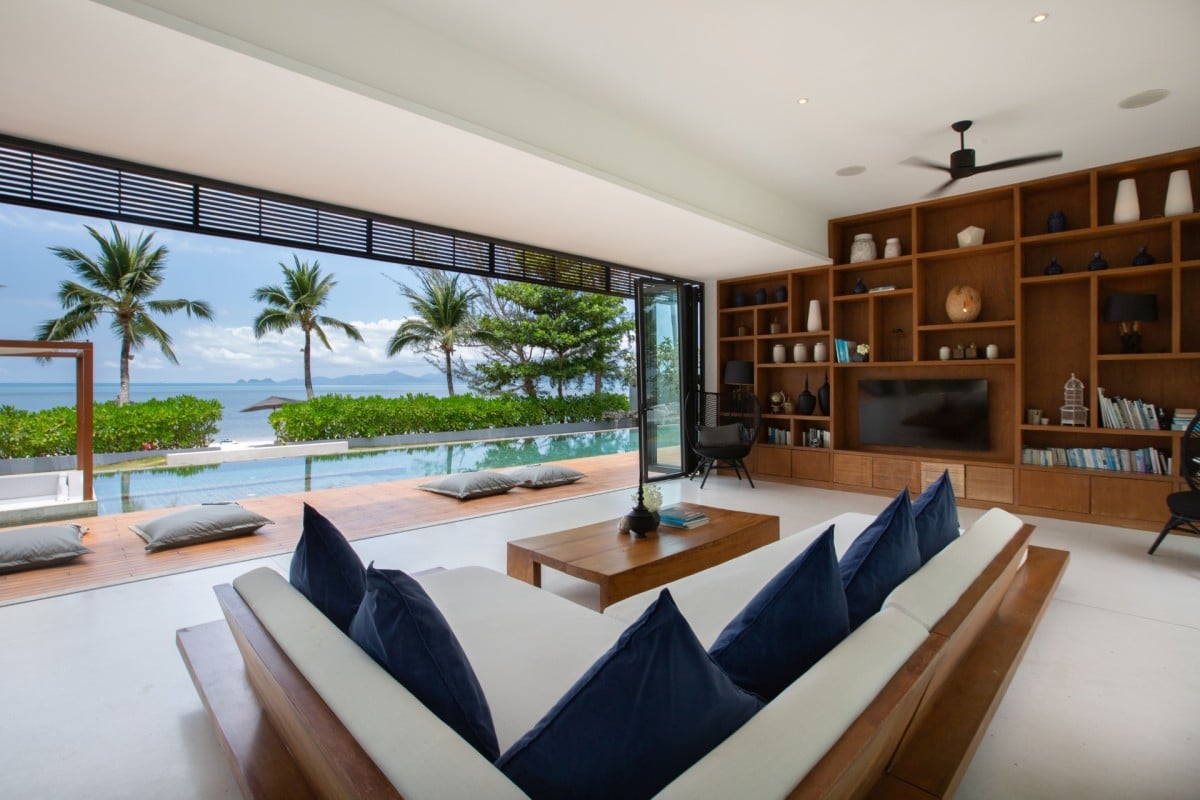 Just 30 minutes from Koh Samui Airport, Villa Malouna is a peaceful beachfront sanctuary on Laem Noi Beach, boasting 45 meters of soft white sand and panoramic views across the lagoon to Koh Phangan. A vibrant coral reef lies just offshore for snorkelling, while spectacular sunsets and the gentle rhythm of local fishing boats create a truly idyllic setting.
