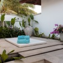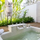 The villa comprises three pavilions surrounding a 23-meter lap pool tiled in Balinese green stones. A sunken-covered sala with lounge seating encircles the pool, providing a delightful space to relax. Two verandas connect indoor spaces to the lawn furnished with loungers and parasols. Hidden alcoves along the pool feature a Jacuzzi tub and a shaded retreat, offering stimulation and relaxation. housemaid Villa is fully staffed, including an English-speaking villa manager, housemaid, villa handyman, and trained Thai Chef. The villa manager, available 24/7, resides on-site to address all service needs. Positioned on the quiet northern side of Chaweng Beach, Mia Beach Villa provides a peaceful escape while being close to the best, biggest, and busiest beach on Koh Samui.