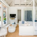 Step onto the expansive terrace and be entranced by the 20-meter lap pool that commands a view of the bay. The villa comprises four bedrooms, each housed in a distinct building to enhance seclusion. A central building functions as the living and kitchen space, providing a comfortable area for gatherings.
