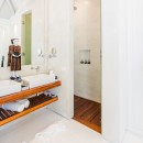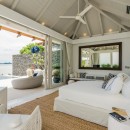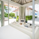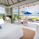 Bedroom 2: Master bedroom with a king-size bed, ceiling fan, A/C, TV, WiFi, safe, sea view, access to the pool with own lounge area, and en-suite bathroom with bathtub, shower, double vanity and WC. 2 guests maximum.