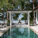Surrounding a magnificent lap pool tiled in Balinese green stones, the pavilions of the residence create a harmonious layout. The pool encircles a large sunken-covered sala with comfortable lounge seating. At the far end, a separate plunge/kid's pool measuring 3x4 meters adds to the beachside allure.