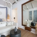 The bedrooms, elegantly furnished, feature king-size beds, LCD TVs with Netflix, built-in wardrobes, personal safes, mini-bars, and large mirrors. Each bedroom boasts an en-suite bathroom with a walk-in rain shower and twin sinks. The Master bedroom and bedroom #2 include a small private garden with tropical plants and an outdoor rain shower. All bedrooms overlook the pool and offer direct access to the pool deck.