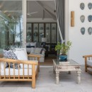 Two inviting verandas provide ideal spots for al-fresco lounging, connecting indoor spaces to the lawn furnished with loungers and parasols. Small gardens and lotus ponds guide you to the final pavilion, which houses a spacious garage and staff quarters. The modern kitchen and dining area face the ocean, while the living room offers an additional dining area outside.