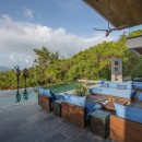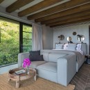 The upper levels of the main house feature three luxurious sea-view bedrooms, each with a unique perspectives. The Jungle Suite, located below the terrace area, provides a spacious and breezy family suite. The fifth bedroom, known as The Bali Suite, can be included in the main residence or rented separately. It features a private entrance, a plunge pool, a kitchenette, and a lush tropical garden view.