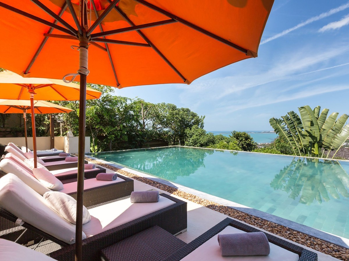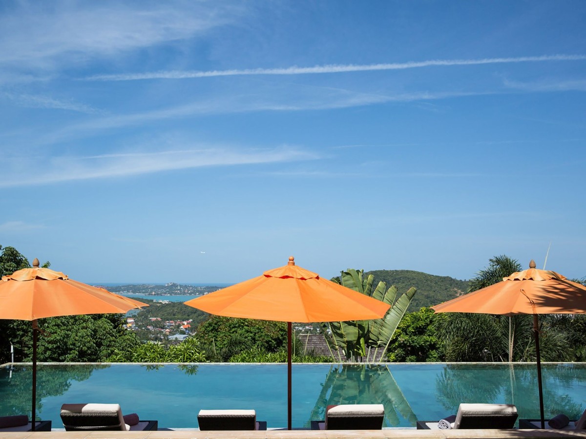 Atulya Residence is a masterpiece of refined tropical living, offering a perfect blend of elegance, comfort, and panoramic natural beauty. This stunning five-bedroom villa is perched above the lush valleys of Bophut, with uninterrupted views stretching out to the bay and the surrounding offshore islands.