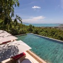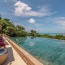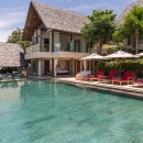 Welcome to Avasara Residence, a luxurious escape nestled in a serene tropical setting. As you arrive, large stepping stones guide you over a tranquil water feature into the heart of the villa—an expansive living and dining pavilion seamlessly integrated with a state-of-the-art kitchen. Spanning nearly the full length of the villa, this open-concept space features a soaring vaulted ceiling and wraparound glass walls that open onto the terrace, unveiling breathtaking panoramic views.