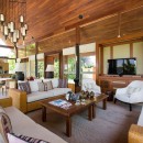 Step outside onto the balcony running the length of the pavilion, where a clear glass balustrade offers uninterrupted views over the lush garden and stunning 20-metre pool. All-weather chairs are perfectly positioned here for soaking in the scenery.