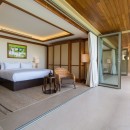 Bedroom 5: Bedroom with a king-size bed, A/C, WiFi, TV, sound system, safe, mini fridge, pool view, and en-suite bathroom with bathtub, shower, double vanity, bidet and WC. 2 guests maximum.