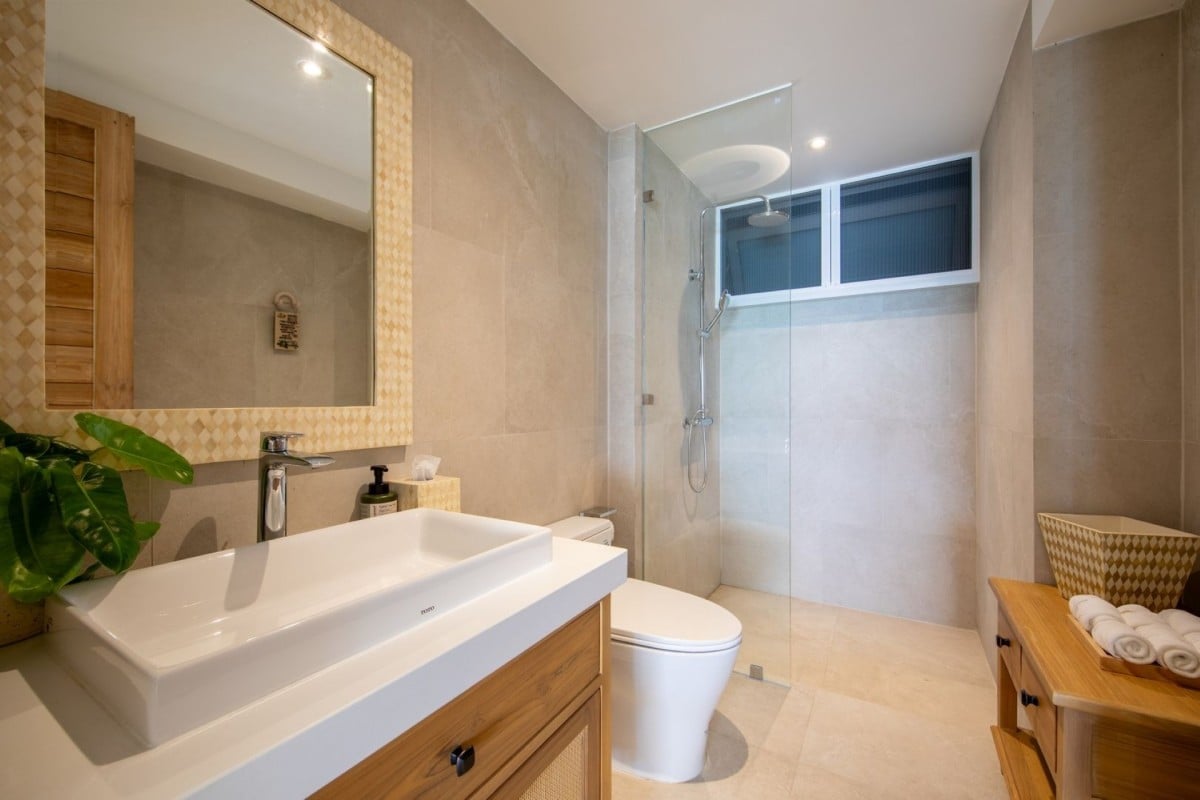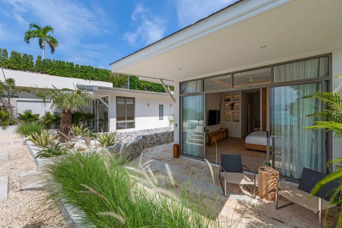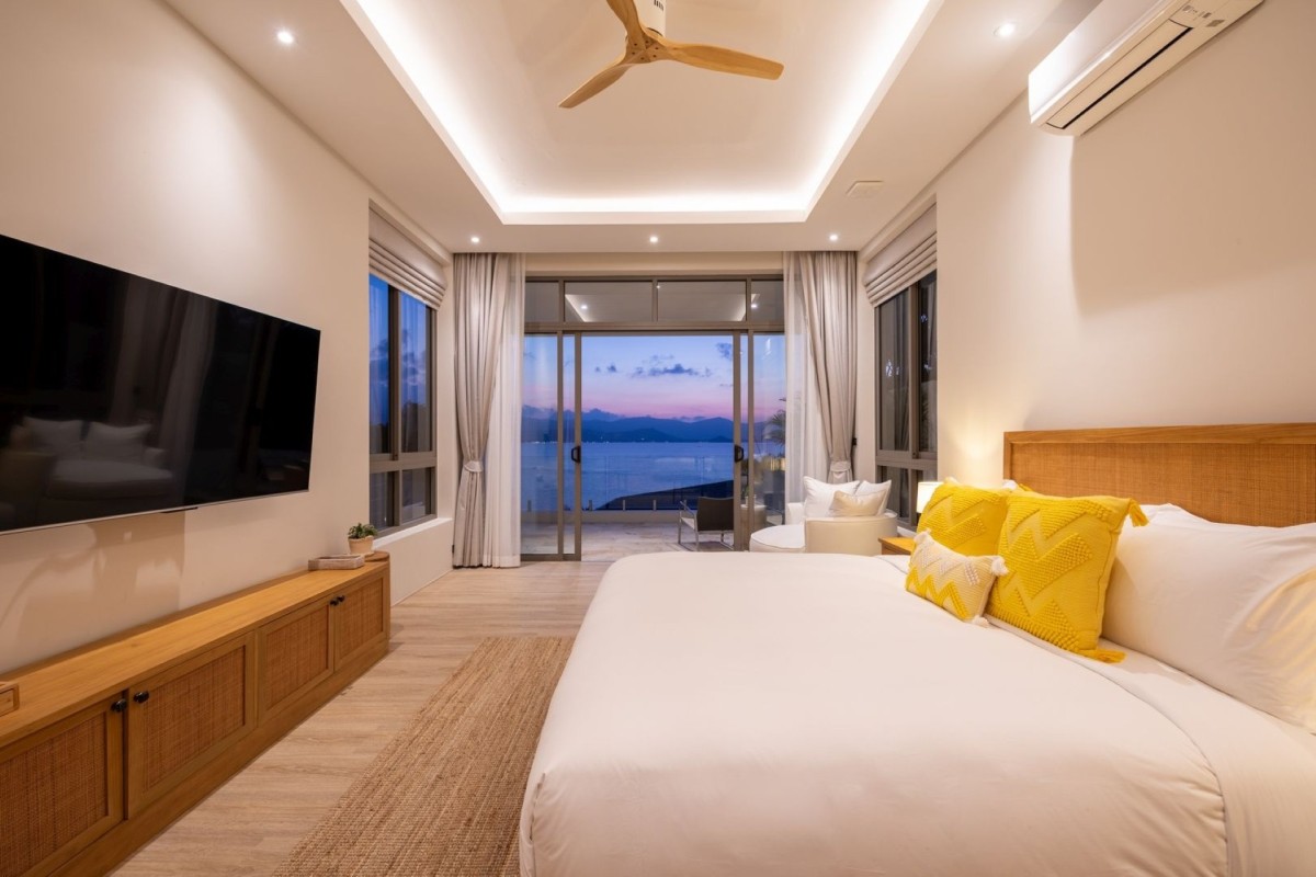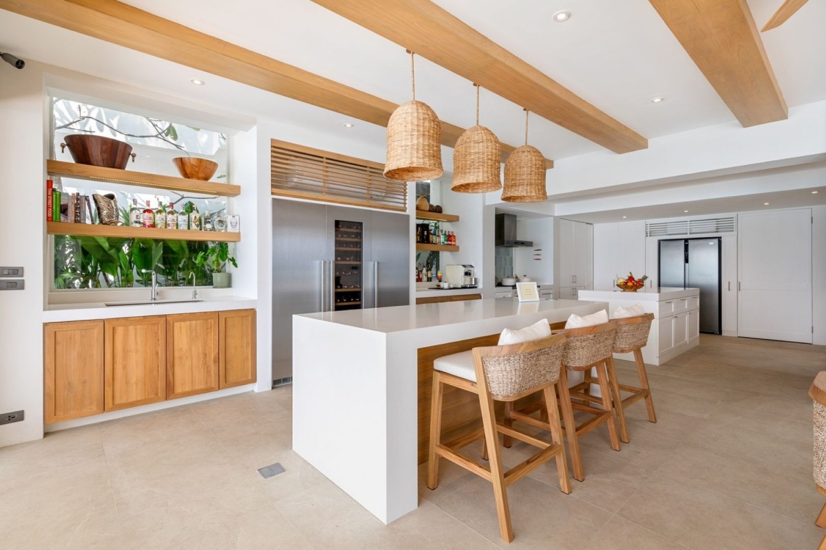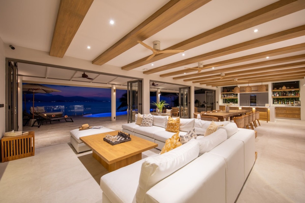 Designed across four levels, Villa Peace comfortably accommodates up to 10 adults and 4 children or 8 adults and 6 children, with five en-suite king bedrooms and a dedicated children’s bunk room. Floor-to-ceiling windows throughout maximize natural light and uninterrupted sea views, while premium bedding, air-conditioning, and well-appointed bathrooms ensure exceptional comfort.