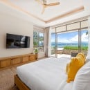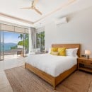 Bedroom 3: Bedroom with a king-size bed, WiFi, A/C, ceiling fan, TV, fridge, safe, ocean view, connected with bedroom 4, shared bathroom with shower, vanity, and WC. 2 guests maximum